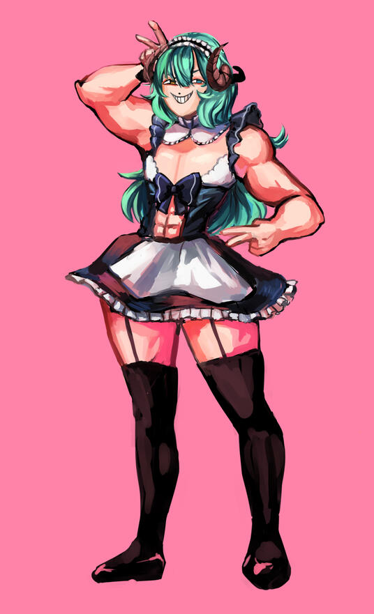 For this type of commissions, I chadify your design. PECS! ABS! BICEPS! Muscles become huge. Note that I may modify aspects of your design/outfit to show more MUSCLE!!!